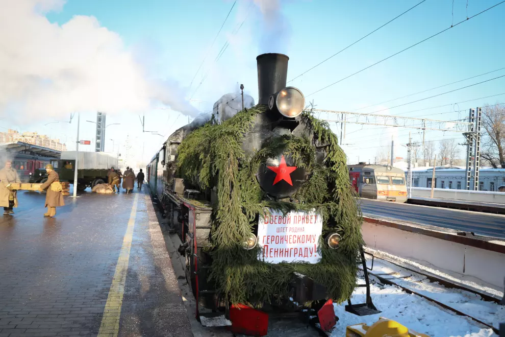 Губернатор подчеркнул, что железную дорогу, по которой пришёл этот состав, не случайно назвали «Дорогой Победы». Создание этой линии стало примером невероятной силы духа. Всего за семнадцать дней было построено 33 километра путей. Работы велись круглосуточно, несмотря на то, что немецкие войска обстреливали и бомбили строителей. Многие из тех, кто участвовал в прокладке «Дороги Победы», погибли, так и не дождавшись первого поезда. Тем не менее, они спасли тысячи жизней и способствовали окончательному разгром фашистов под Ленинградом.