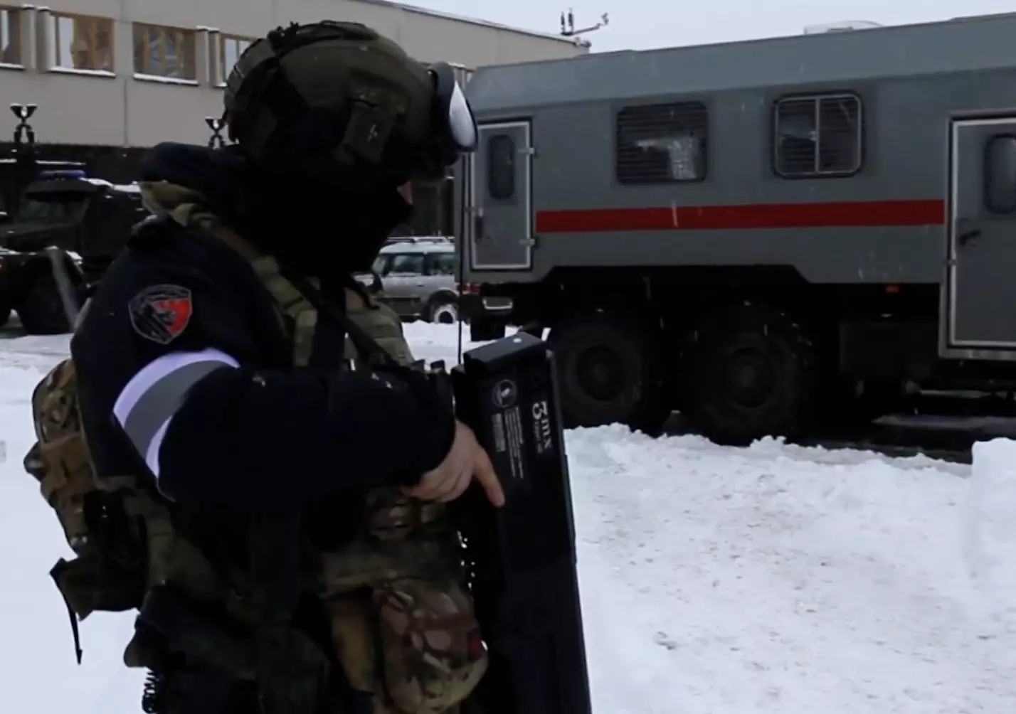Сотрудники Росгвардии, вместе с бойцами ОМОН "Бастион", СОБР "Гранит", полицейскими Красногвардейского района и представителями службы безопасности стратегического объекта города, провели масштабные тактико-специальные учения с захватом заложников. В ходе учений, имитирующих реальную ситуацию, группа вооруженных преступников проникла внутрь и захватила посетителей в заложники. Затем они вывели из строя систему видеонаблюдения и установили муляж взрывного устройства у входных дверей.